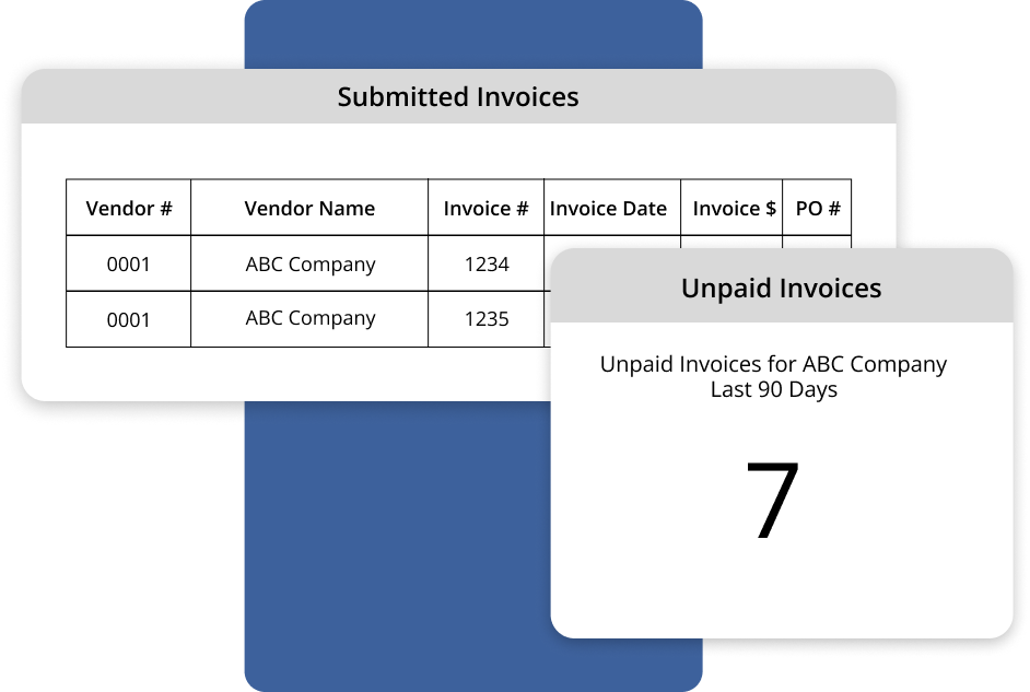 Full 24/7/365 self-service for your vendors without involving your staff. Vendors can find invoice status and payment information, submit invoices, launch disputes, receive and provide updates to POs, collaborate on discrepancies, participate in dynamic discounting, and more.